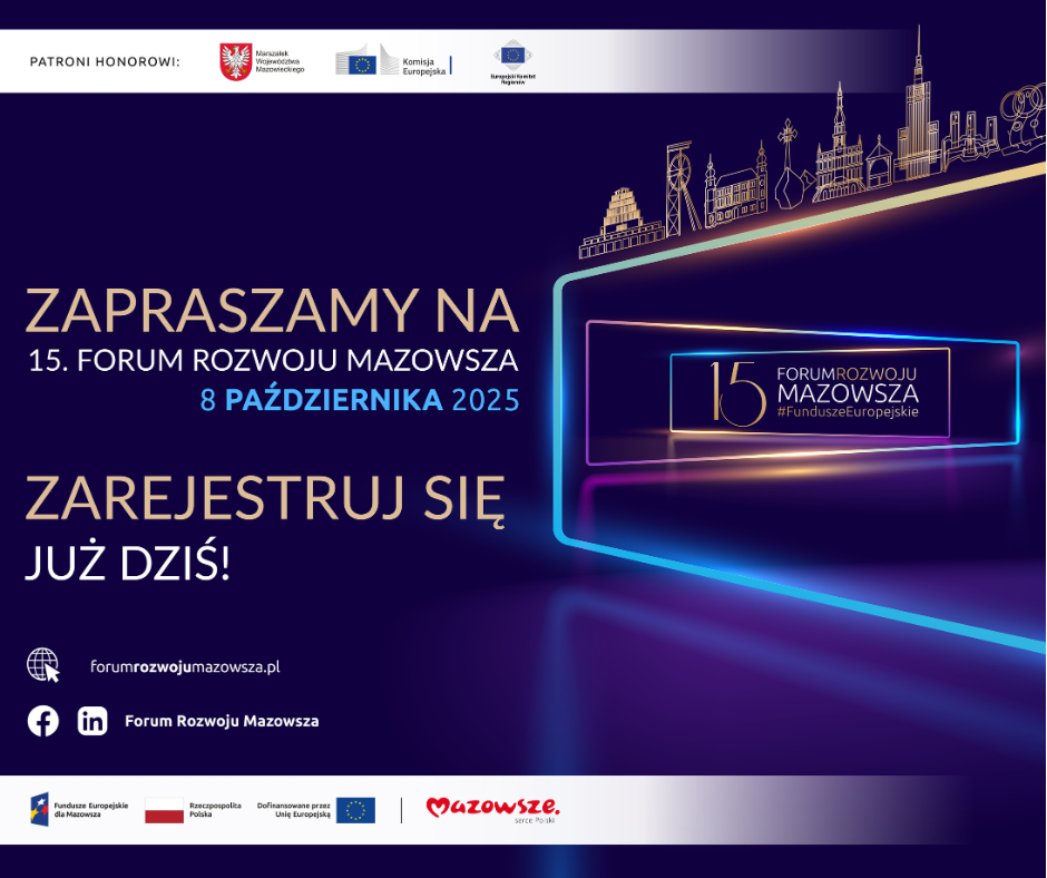Forum Rozwoju Mazowsza to jedno z najważniejszych wydarzeń poświęcone roli Unii Europejskiej w rozwoju regionalnym, które jest organizowane przez Mazowiecką Jednostkę Wdrażania Programów Unijnych. W tym roku wydarzenie zyskuje ponadregionalny wymiar. Forum otwiera się również na inne regiony kraju, zapraszając do współpracy partnerów z całej Polski.