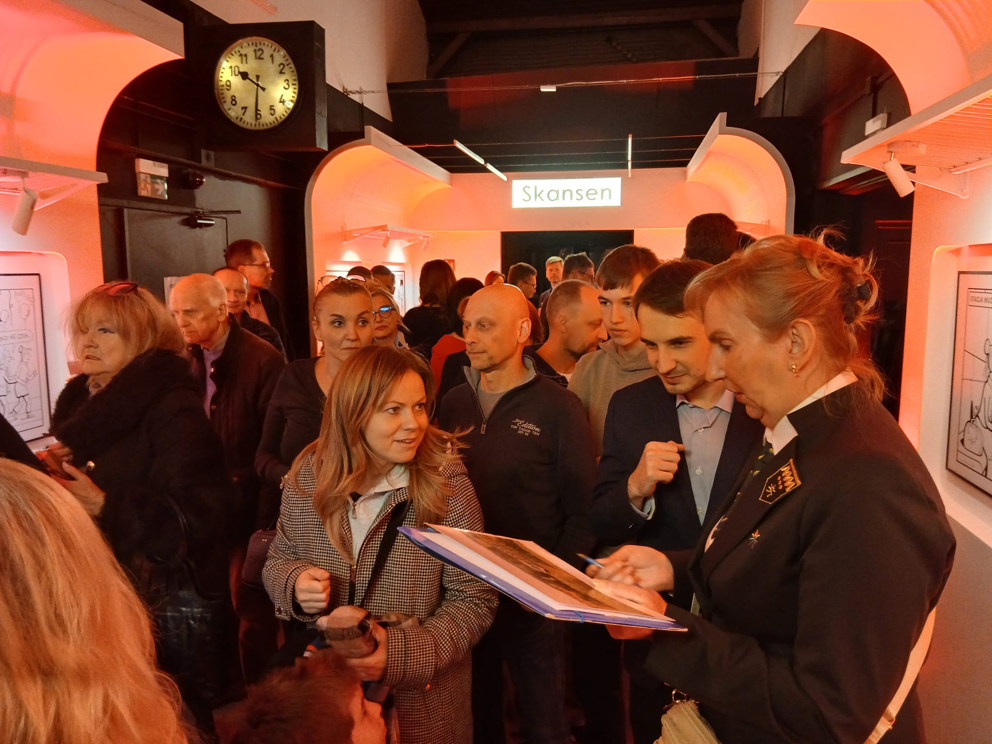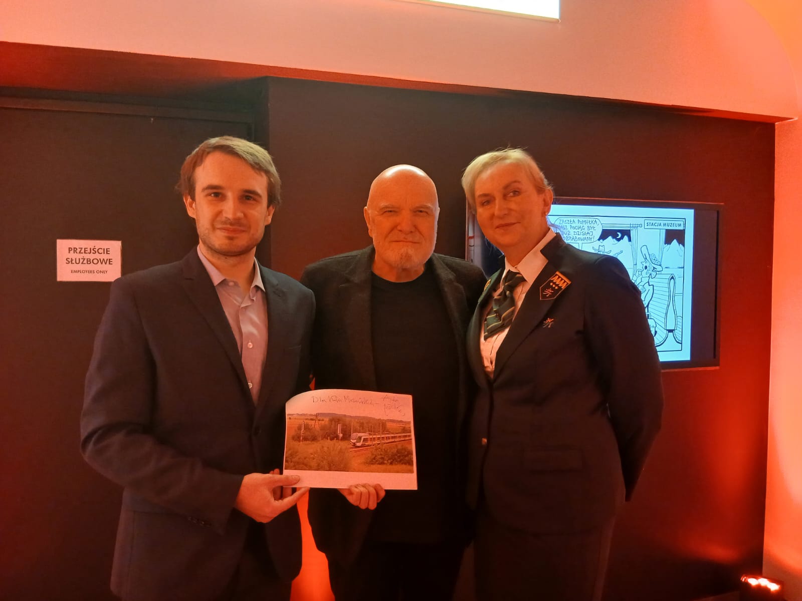 Następnie goście mogli wysłuchać przemówienia samego autora, który podzielił się anegdotami, dotyczącymi tworzenia grafik. Andrzej Mleczko podkreślił też, że sam lubi jeździć pociągami, ale martwi go skrócenie czasu podróży… Uczestnicy wydarzenia mogli także porozmawiać z mistrzem rysunku oraz uzyskać jego autograf.